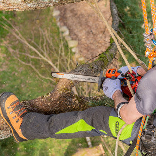 - Ultra-high tear strength Dyneema fabric at the right calf to protect against small cuts caused by the chainsaw when hanging off the harness.